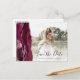 Det här vågrät i eleganten sparar datumet för vykortet med en burgomfärgad vattenfärgsagat gräns som trimmas med faux silver glitter. Byt enkelt ut exempelbilden mot ett eget foto av framtida brud och triom. Anpassadet kombinerar handskriftsskript och typsnitt för mörk. Ett vitt övertoningsfilter hjälper till att göra så att texten visas. Lägg till returadressen och ytterligare information på baksidan.