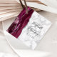 Den här eleganten har en märkre med modern bröllopsförmån en burgundisk vattenfärgsdesign som trimmas med faux silver glitter. Anpassa enkelt texten på en grått- och vit marmorbakgrund, med namnen av bruden och trimmen i svart handskriftsrografi över en stor, blek grått-ampersand. Lägg till ett personligt meddelande i skriptbokstäver på baksidan.