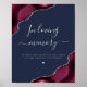 Burgundy Silver Agate Navy Blue Bröllopsminne Poster