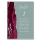 Det moderna kortet för bordsnummer i bröllop som är lämnat kant i eleganten har en burgudröd vattenfärgsagat i gräns som trimmas med faux silver glitter. Ord "bord" visas i ett vitt handskript på gröntens bakgrund. Lägg till namnen för de gäster som tilldelats varje bord.