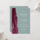 Den här elegantens lämnat kant har en modern bröllopsinbjudan med en burgundisk vattenfärgad agat gräns som trimmas med silver faux glitter. Med anpassadet text kombineras handskrift, tryckplåt och kursivt typsnitt i vitt på gröntens bakgrund. På baksidan finns utrymme för information om bröllop på en solid sage-grönt, tillsammans med en QR-kodgäst som kan söka på webbplatsen och OSAN, vilket sparar kostnaderna för utskrift och utskick av separat OSA kort.