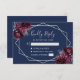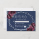 OSA kort i elegant bröllop har en silver-geometrisk ram som är dekorerad med burgundi och silver blommigt buketter på en marin blå bakgrund. I anpassadet kombineras silver grått med vismisk handskrift och kopparplåt typsnitt. Baksidan är massiv marin blå.