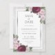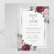 Komplettera din burgundi, firande och silver bröllop med den här blommigten för elegant spara datumkorten. Matchande objekt är tillgängliga.