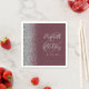 Den lämnat kant i denna elegant moderna bröllop-servetter har en silver faux glitter-design. Med anpassadet kombineras handskrift och typsnitt för silver grått över en stor yta på en burgundbakgrund.