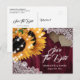 Burgundy Solros Bröllop spara datum vykort