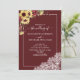 Burgundy Solros Rustic Script Photo Bröllop Inbjudningar