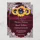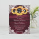Elegant- och solrosbröllop-inbjudningar som är idealiska för en romantisk burgundisk rustisk bröllopsfest inspirerad av solrosblommor. Matchande objekt är tillgängliga.