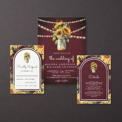 Burgundy Sunflower Mason Jar Arch Wedding Details Tilläggskort