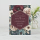 This artistic design evokes a dramatic and romantic mood. A beautiful arrangement of deep burgundy peonies, ivory anemones, and rich teal blossoms is set against a dark, shadowy backdrop. The painterly bouquet creates a sophisticated and timeless feel for an elegant union. This rich, moody palette is perfect for an evening affair.