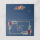 Dekorerad med vattenfärgade bohemer, blommor från boho stil, ro i burgundi. Elegantens blå bakgrund. Mallar för datum för namn namn och bröllop. Namn är skrivet med ett modernt och elegant handskript i stil. Golden färgad brev. Med faux guld ram. Utrymme för dig till skriva för hand namnen av dina gäster och bordsnumret. Inuti: marin blå färgad.