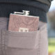 Bakgrund med negativ verkan, dvs. burgundbakgrund, dekorerad med lila grapeviner på klassiska monogrammerade gåvor och tillbehör.