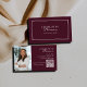 Burgundy & White Quiet Luxury Affärskortsmall - Elegant gammaldags professionell varumärkesprofil med foto och QR-kod – Fullständigt redigerbar