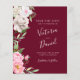 Burgundy Watercolor Blommigt Bröllop spara datum