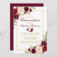 Burgundy Watercolor Blommigt Quinceanera Guld Inbjudningar