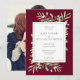 Med känsliga vattenfärggröna blad på en burgunderbakgrund kan denna eleganta botaniska bröllopsinbjudan anpassas med ditt foto och viktig information om bröllopsdagen. Designad av Thisisnotme©