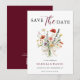 Announce your wedding date with rich, romantic elegance using this Floral Script Wedding Save the Date in a deep burgundy color palette, accented with a graceful floral bouquet tied with a delicate bow. This sophisticated design features a hand-painted watercolor bouquet paired with flowing script calligraphy and refined serif typography, creating a timeless look with a modern, luxurious feel.