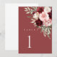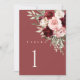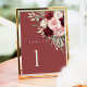 floral burgundy table number cards