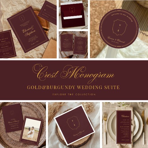 Luxe Crest Monogram Burgundy & Gold Wedding SuiteDesignad av Anastasiya S.