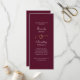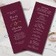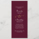 Det här vita skriptet skrivs ut på en mörks burgundbakgrund med en guld-ampersand är ett elegant-program för bröllopsdagen. Anpassa all information, inklusive information om ceremonier och deltagare på baksidan med samma typsnitt