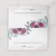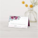 Elegant blommigt bröllop-platskort visar vackra vattenburgundi, blått och vit ros med silver löv.