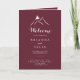 Det här burguddiga vita silhuetterbergsvikta bröllopsprogrammet är perfekt för ett rustiskt bröllop. Utformningen har handmålade, tydliga berg. Inkludera ett citattecken eller ett kort-meddelande, serviceordning, bröllopsfest och tackmeddelande.