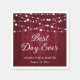 Dessa burgunda, rustiska bröllop-pappra blöjor med en träbakgrund som är försedd med ljus är idealiska för en burgundisk, rustik land, bakgård eller ladugårdskontakt. Anpassa enkelt dessa blöjor med dina uppgifter om bröllop.
