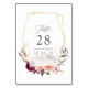 Boho blomsterbröllop bord nummer kort med peonior och rosor med guld geometrisk ram kan anpassas till ditt evenemang specifikationer.