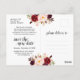 Detta är den moderna lantliga Burgundy blommiga designen med Svart text, Bröllopsfirande Omplanerat (uppskjutet / uppskjutande) vykort. Det är det perfekta och eleganta sättet att meddela omplaneringen till dina vänner och familj.