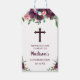 Burgundyburk kors blommig akvarell konfirmation presentetikett