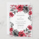 Denna design har en slående kontrast mellan djupröda och dystra kolgrå akvarellrosor. Det konstnärliga blomsterarrangemanget skapar en sofistikerad och dramatisk atmosfär, perfekt för en kall säsongs händelse. Elegant lövverk i varierande nyanser av grått kompletterar de djärva blommorna mot en ren vit bakgrund.