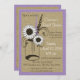 Söta land rustic stil inbjudningskort för möhippan med en fullt av blommor i burk över det roliga utseendet av knäpp och accentuerad i lila med polkapunkter.