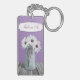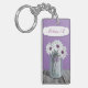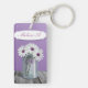 Nätt & lantlig landblommigtdubbla sid masonen burk somkeychain är designad med vit- och liladaisy i burken som sitter atop ett lantligt wood bord, över en purpurfärgad bakgrund och personligen med ditt namn. Masonburken har "kärlek" som utföra i relief på den i illustrationen.