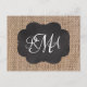 Burlap Chalkboard-utseendet trippelmonogrammat skr Vykort