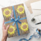 Landlookgåva som slår in den paper.with-barnwoodburlap och solrosen