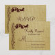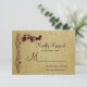 Ett svarskort för landsbyggsbröllopets OSA som innehåller en baksida för brännskador och en häst- och bärplan med elegantens vintage blomstrar blommor och viner som flödar nedåt. Dessa är designade för att matcha dessa bröllopsinbjudningar i land stil: