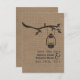 En rustik bröllop spara datum med ett camping-/utomhustema med en svart illustration av en oljelterna som hänger från träd gren med löv. Bakgrunden är inkapslad. Anpassa texten med information om tillfälle.