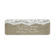 Burlap & Lace Enkel Rustik Bröllopsinbjudan Returadress Etikett