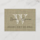 Burlap look informationskort. För att matcha inbjudningar, anpassa texten efter behov. Lägg till brudens och brudgummens namn med ett monogram och bröllopsdatum på baksidan. Inte riktig burlap.