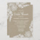 Burlap och Blommigt Snöre Inbjudningskort för möhippa - har en tryckt bakgrund med en korvbakgrund med en dekorativ blommigt snöre mönster överst och grund till ge inbjudan, land eller vintage.