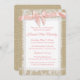 Burlap, snöre och en rosa buggar rustik baptism eller doftningsinbjudan. Anpassa för baptism, gemenskap eller speciella religiösor.