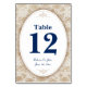 Det här bordsnumret i bröllop har ett tema för vintage med vit oval på en brännpunkt och snöre bakgrund. Anpassadet är marint blått och kan ändras till ett annat färg.