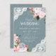 Burlap och Snöre Rustic Dusty Blue Blommigt Bröllo Inbjudningar