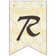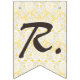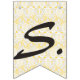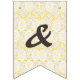 Rustic chic bröllop buntbanderoll, med grafik av ett brännbart utseende och gult och vitt snöre. Stora gulter solblommor dekorerar fem av flaggor. Texten Mr. Och fru dekorerar lacy tittar flaggor i mitten. Underbar för din bröllopsmottagning eller repetitionsmiddag.