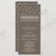 Burlap Star String Ljus Rustic Bröllopsprogram - Rustik Teman- eller landsbyggsbröllop-program har en tryckt brun bakgrund med silver star och ljus. Baksidan av ceremoniprogrammen har också en matchande design. Om du trycker på CUSTOMIZE IT-knappen kan du ändra teckensnittet stil, färg, storlekt, flytta text mellan &andra alternativ. Det kommer att ge dig fler valmöjligheter om du behöver dem.