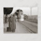 The Burlington Railroads Zephyr strömlinjeformade tåg på en station. East Dubuque, Illinois. 1940.