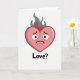 This Valentine’s Day card explores the uncertain side of love with a thoughtful design. At the center is a soft pink heart character set against a white background, making its expression the main focus. The heart has large dark eyes, a slight frown, and gently furrowed brows that convey sadness and confusion. Above it, wisps of smoky gray with hints of red drift upward, suggesting emotional weight rather than passion. Below the heart, the word “Love?” appears in rounded lettering, reinforcing the question being asked. The open background highlights the heart’s vulnerability, making this card a meaningful choice for expressing complicated feelings or quiet reflection on Valentine’s Day.