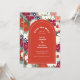 This boho chic floral is so on trend for the coming year. Colorful flowers of burgundy, burnt orange, sage green and navy are retro and fun. The QR code makes it easy for your guests to get the details for your special day