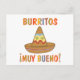 Den mexikanska maten är den bästa verkligen! kärlek för utsökt Burritos med den här färgstarka designen med Sombrero och ord Burritos Muy Bueno!
