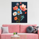 Den här levande teckningen har en spricka av färgstarka blommor mot en svart bakgrund. De uttryckliga penseldragen och det fet färg skapar ett fantastiskt och öga-fångstande biet som säkerligen tillför en aning personlighet till vilket utrymme som helst.