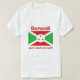 En redigerbar titel och slogan åtföljer det centrala motivet med vita diagonaler över rött och grönt av den burundiska flagga på framsidan av denna t-shirt. Baksidan visningar ett detaljerat karta i Burundi.